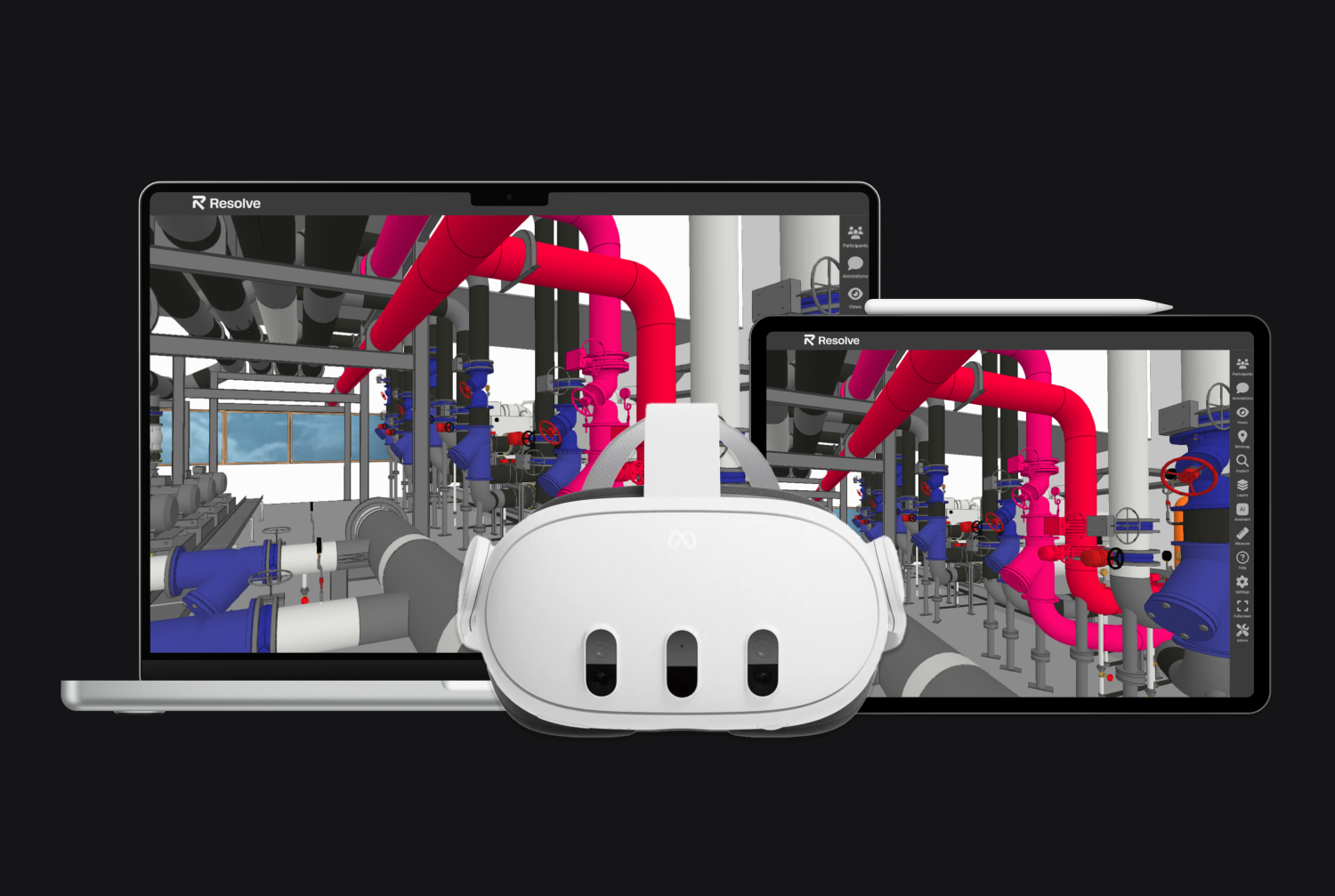 Upload your NWD files to Resolve and open them on wireless Meta Quest headsets (Quest 2, Quest 3, Quest 3S, Quest Pro), on the web, or on iPad. No extensive cleanup required.